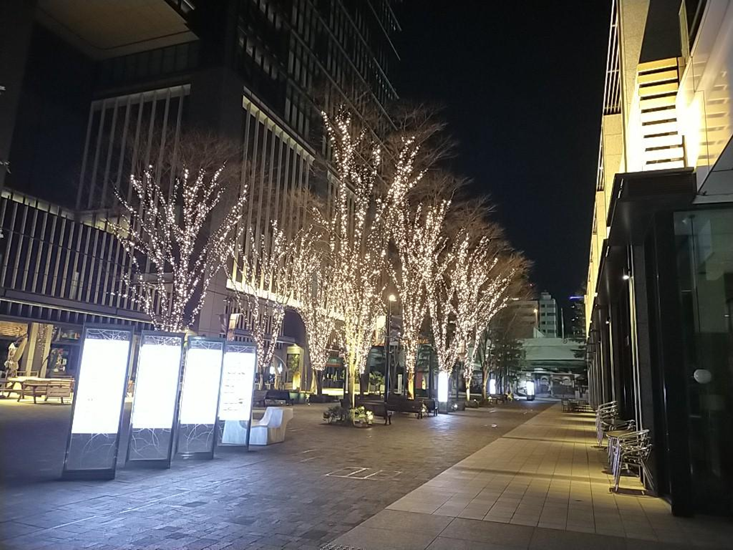 写真はソリマチが入っているフィナンシャルシティ周辺のみですが、「丸の内仲通り」を中心に有楽町駅前の東京交通会館や大手町仲通り、約1.2kmありますので(LED約120万球)、いろんな角度からご覧いただきたいです!