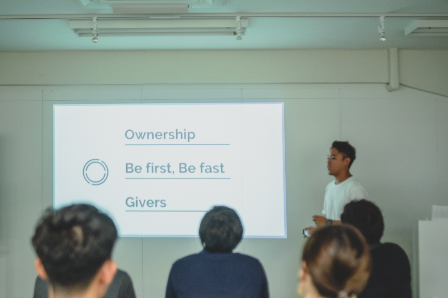 (木元)これまで突っ走ってきたスペースには様々な課題が存在します。 今目指している事業計画を達成させる為にはこのフェーズから「事業作り」だけでなく「組織作り」をしていく必要がある。 そこで大きく評価制度の導入と、報酬制度の見直しを行いました。 評価制度については、組織を拡大する為には全員の成長が必要。みんなが成長することにより組織が多くなり、新たな成長機会が生まれる。事を意識して設計し、全員が非連続成長を遂げる事を支援していきたいと思っています。 「利他主義」に基づいたスペースバリュー(行動指針)を策定。スペースエージェントの風土を作っていくのはここにいるみんな 先程、経営陣から話のあった、スペースが大切にしていきたい「利他主義」。マインド面ではこれに沿った成長を支援していきたいのですが、では一体なにをすれば利他主義なのか、それが僕にも分かっていませんでした。。 なので、利他主義を分解したスペースバリュー(行動指針)を策定しました。 それは以下3つです。 ・Ownership ・Be first, Be fast ・Givers この3つのバリューは策定しただけでは全く意味がありません。このバリューを基にスペースエージェントの風土を作っていくのはここにいるみんなです。 評価設計もこれに伴って設計されているので全員で大切に育てて行きましょう。 スペースバリューが策定され、みんなの成長軸やどこに向かって成長していくのか、その支援はどうなっ ているのかがとても明確になりました。 ※スペースバリューについては別の機会で記事にしようと思っています!