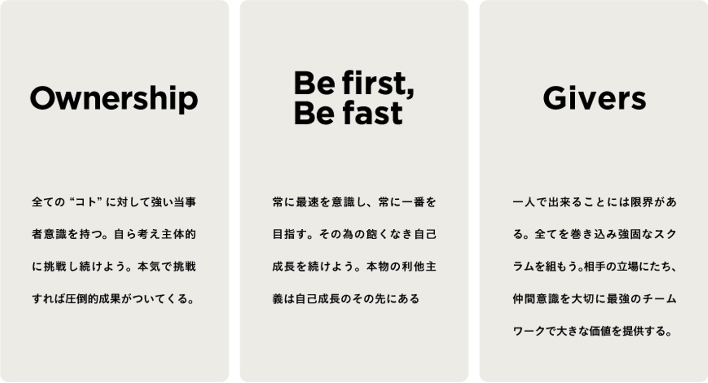 これら3つのバリューには順序や優先度はありません。それぞれが独立したものです。