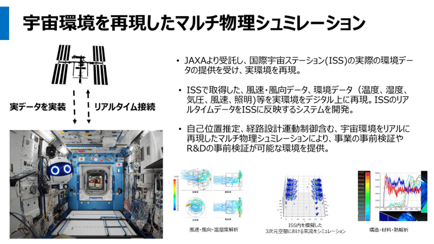 国際宇宙ステーション(ISS)の船内・船外を統合したデジタルツインを開発しています。