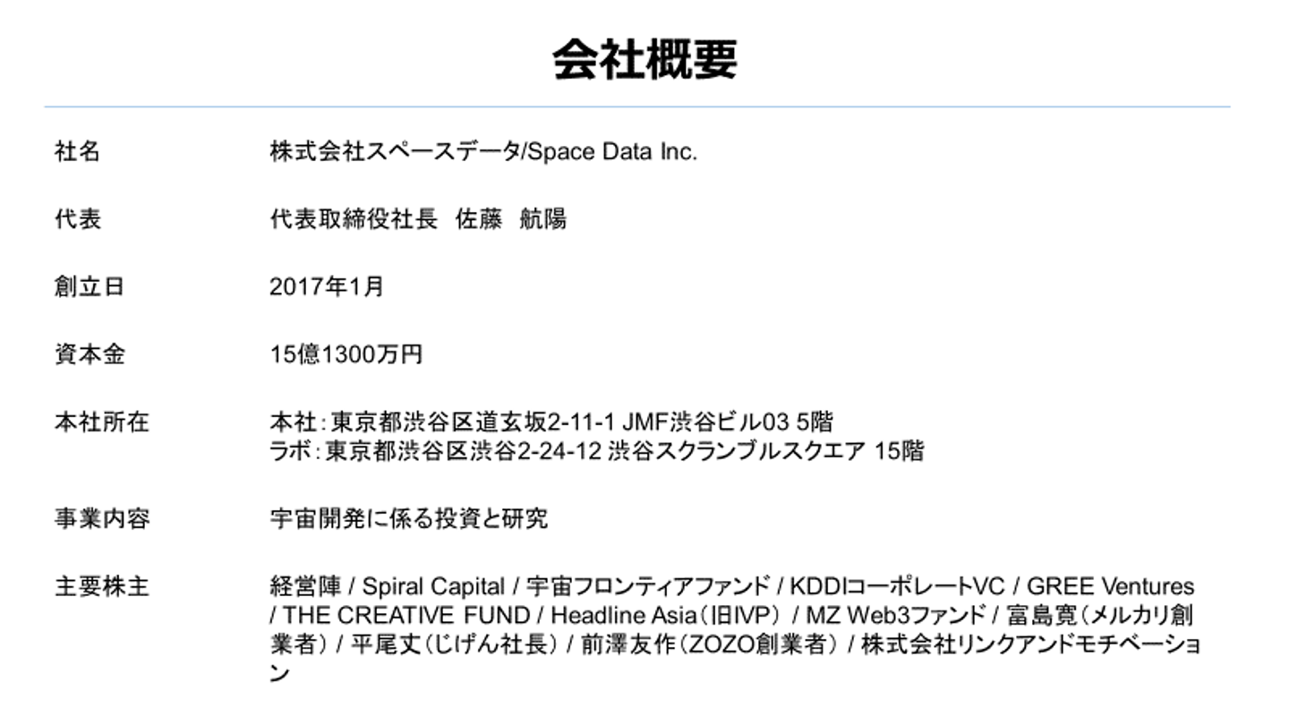 スペースデータは代表の佐藤が2017年に創業した会社です。会社名の通り「情報」を「価値」に変換する事業に一貫して取り組んできました。