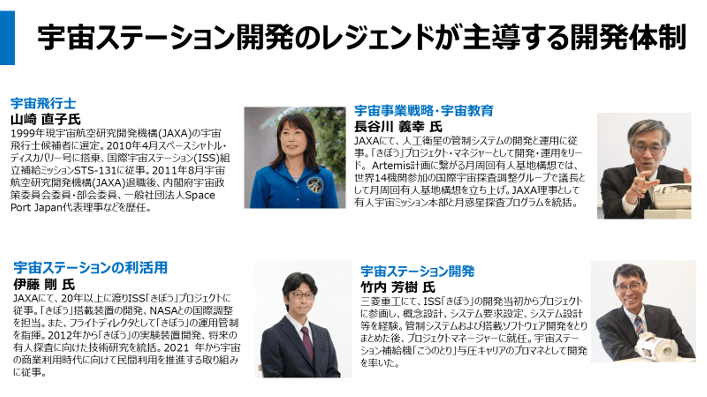 これらの開発に当たっては、ISS「きぼう」日本実験棟の開発に従事してきたレジェンドから、宇宙に行った経験のある宇宙飛行士の山崎直子さんにもご協力頂き、宇宙業界のレジェンド達の「知の継承」を進めています。