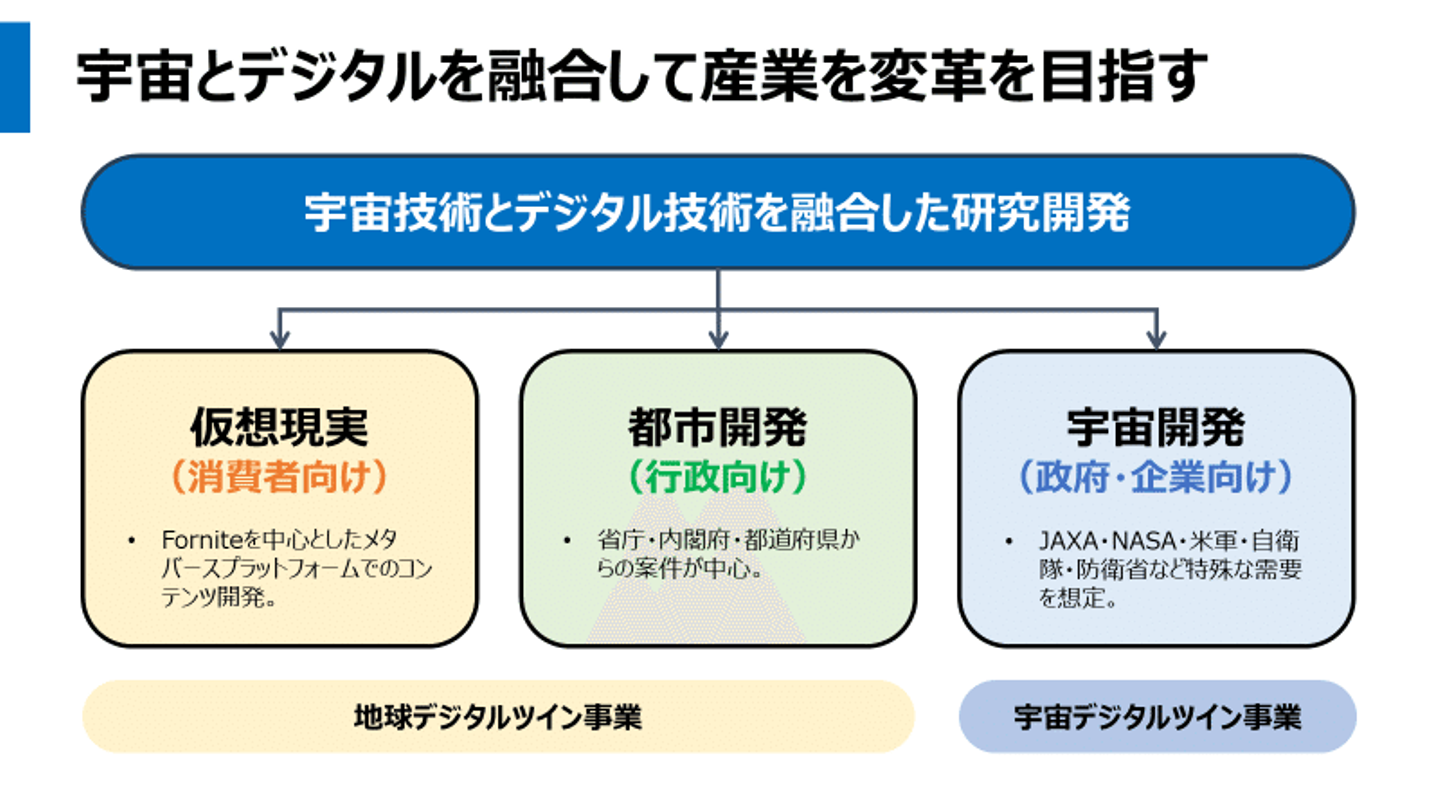 宇宙事業を本格的に始めたのは2024年の4月になりますが、2017年から代表の佐藤が中心となり、デジタル上に地球を再現する「地球デジタルツイン」事業に取り組んできました。
