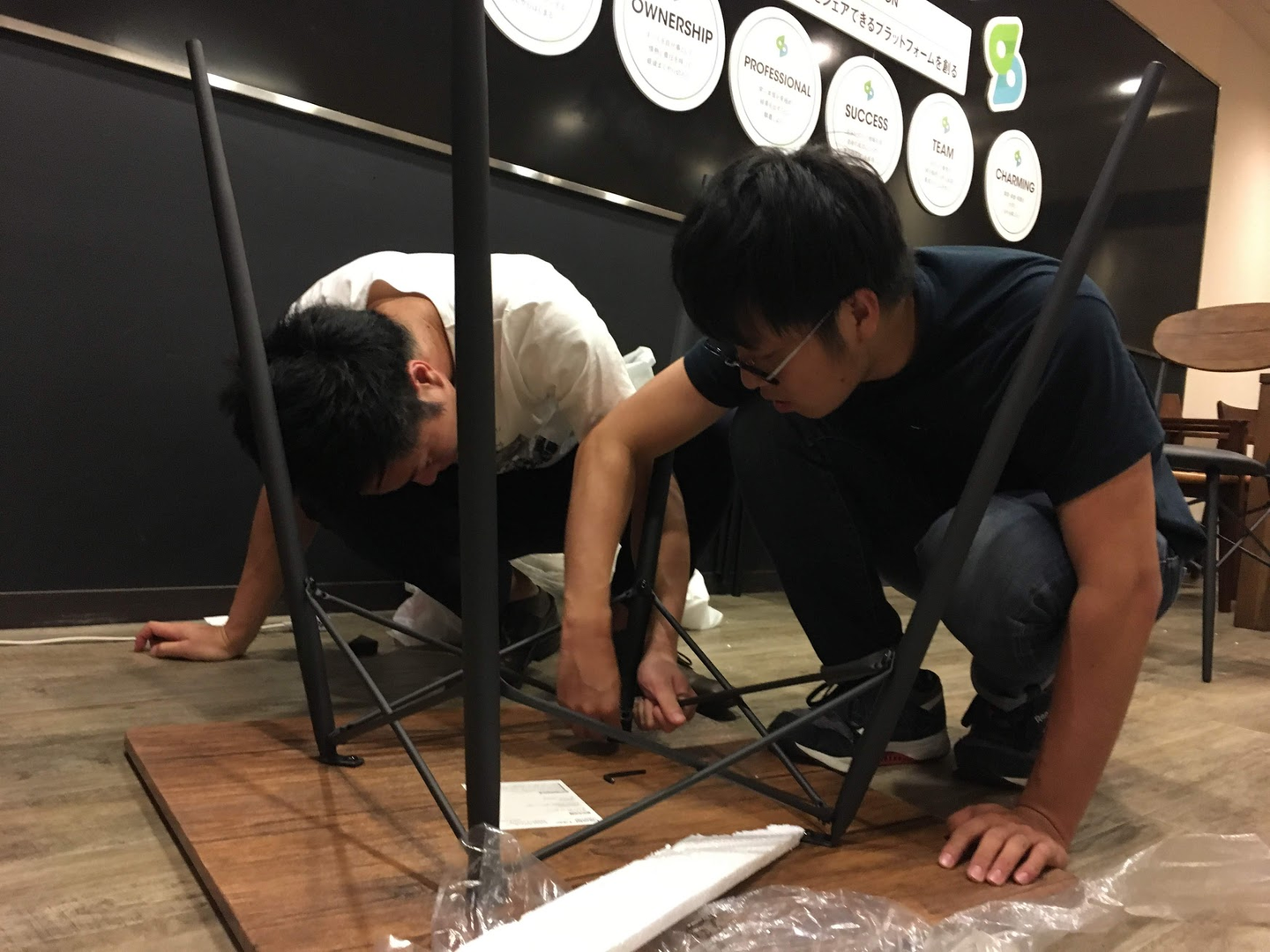 「ぼく、田中くんに聞きたいことがあって(増床オフィスから本社オフィスに)来たはずなのに、なぜか組み立てに参加するはめになったんだけど…しかも気づいたら田中くんいないし…」