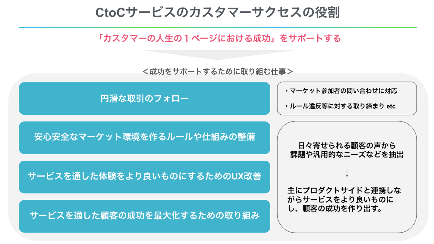 そしてCtoCサービスのカスタマーサクセスも「顧客の成功を生み出す」役割はなんら変わりません。