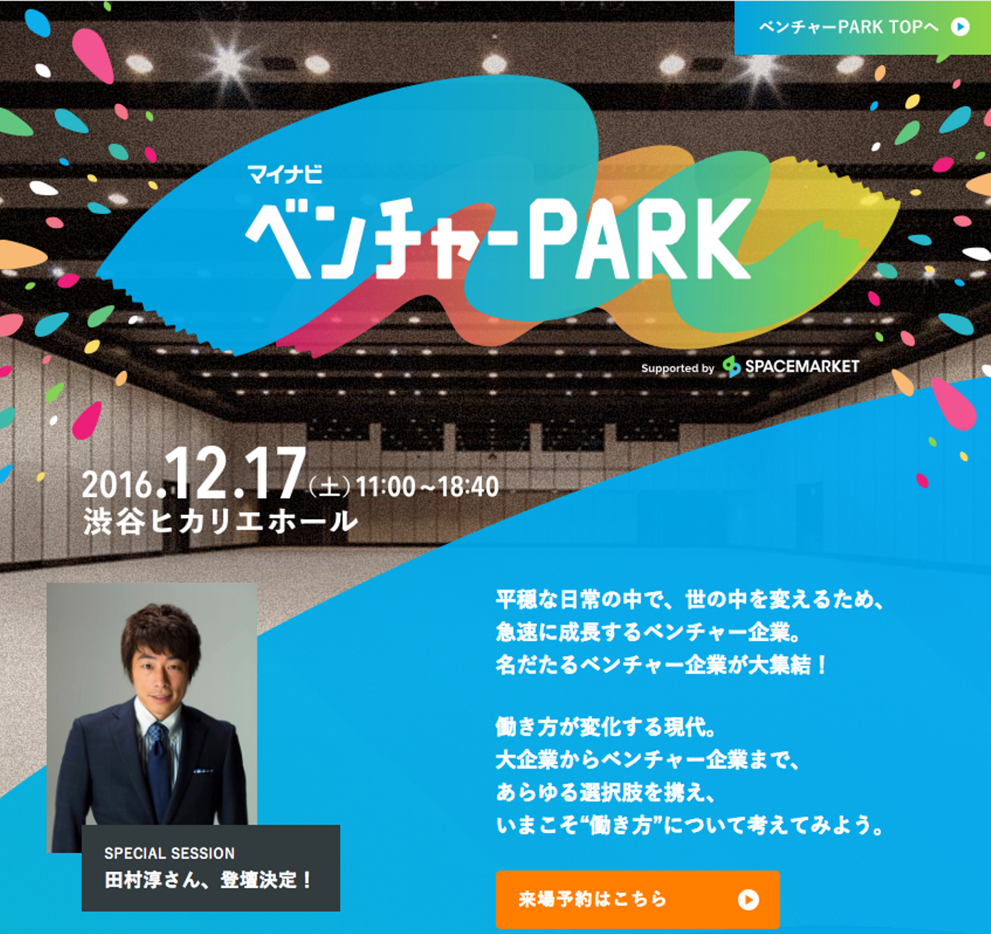 先週12/17(土)に「主催:マイナビ」「運営企画:スペースマーケット」で 「マイナビベンチャーPARK Supported by SPACEMARKET」を開催しました。