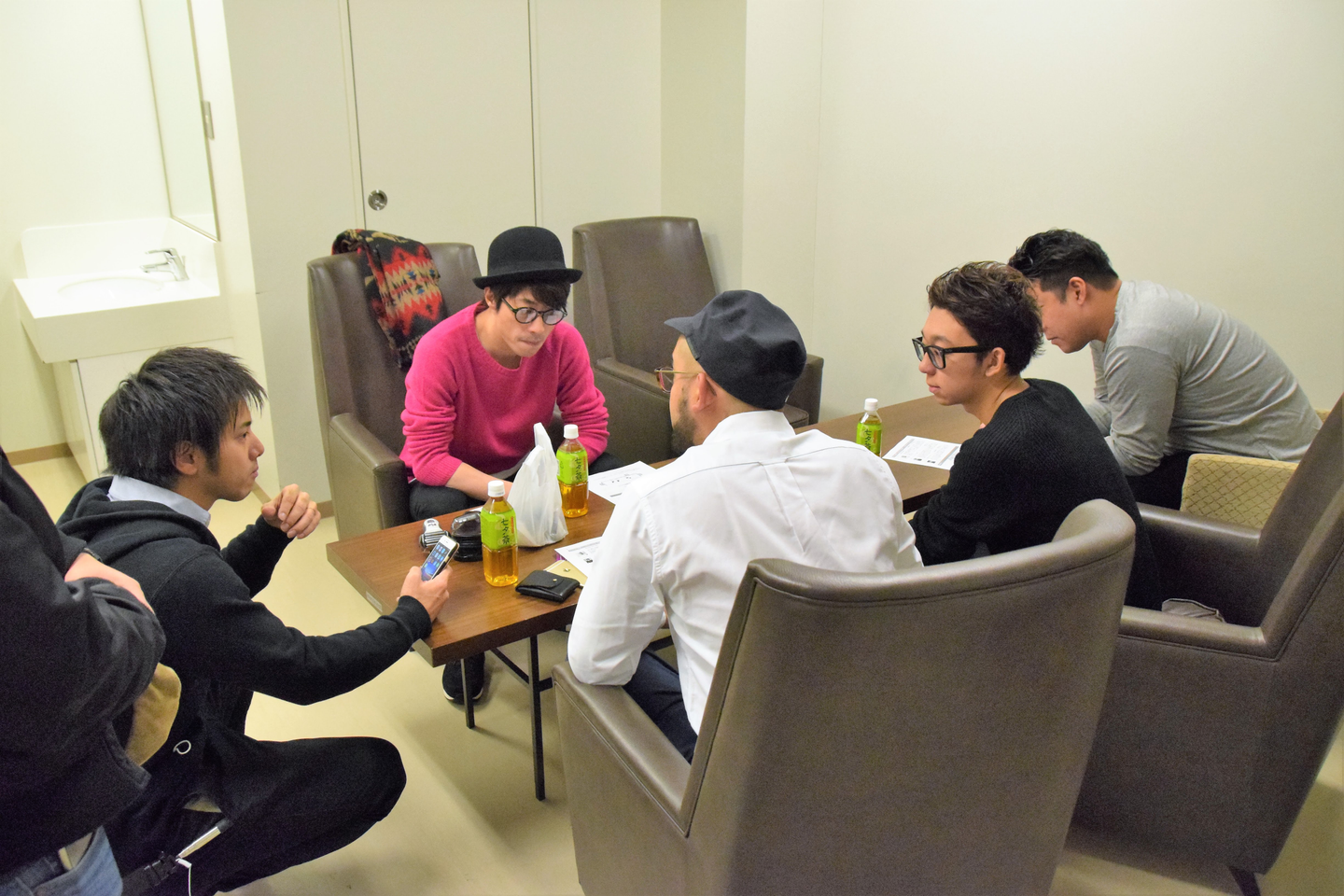 「どんな話をしたら学生に刺さるんだろう?このメンツの場合、仕事という枠ではなく、「ひとりひとりが何かを判断するときの軸ってこんなことあるよ。」とか面白いよね。みんな濃すぎるから。笑」など、かなり真剣に打合せをしていました。