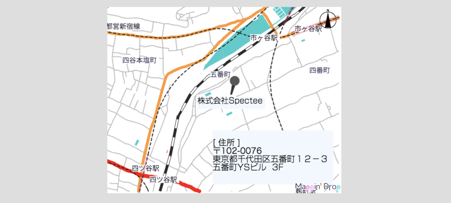 千代田区の五番町にあります。最寄り駅である市ヶ谷駅と四ツ谷駅駅からはぞれぞれ徒歩約5〜10分。