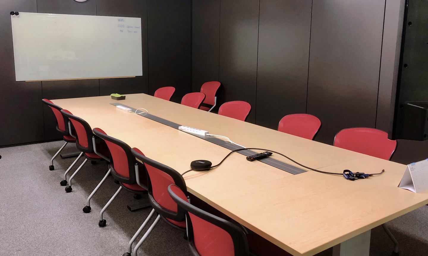 広い会議室では、対面での打ち合わせや、Webセミナーの配信などが行われています。