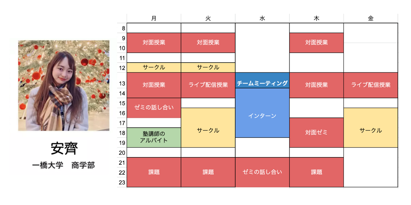パターン①授業にアルバイトにサークルに…!週一回出社で最大限効率よく