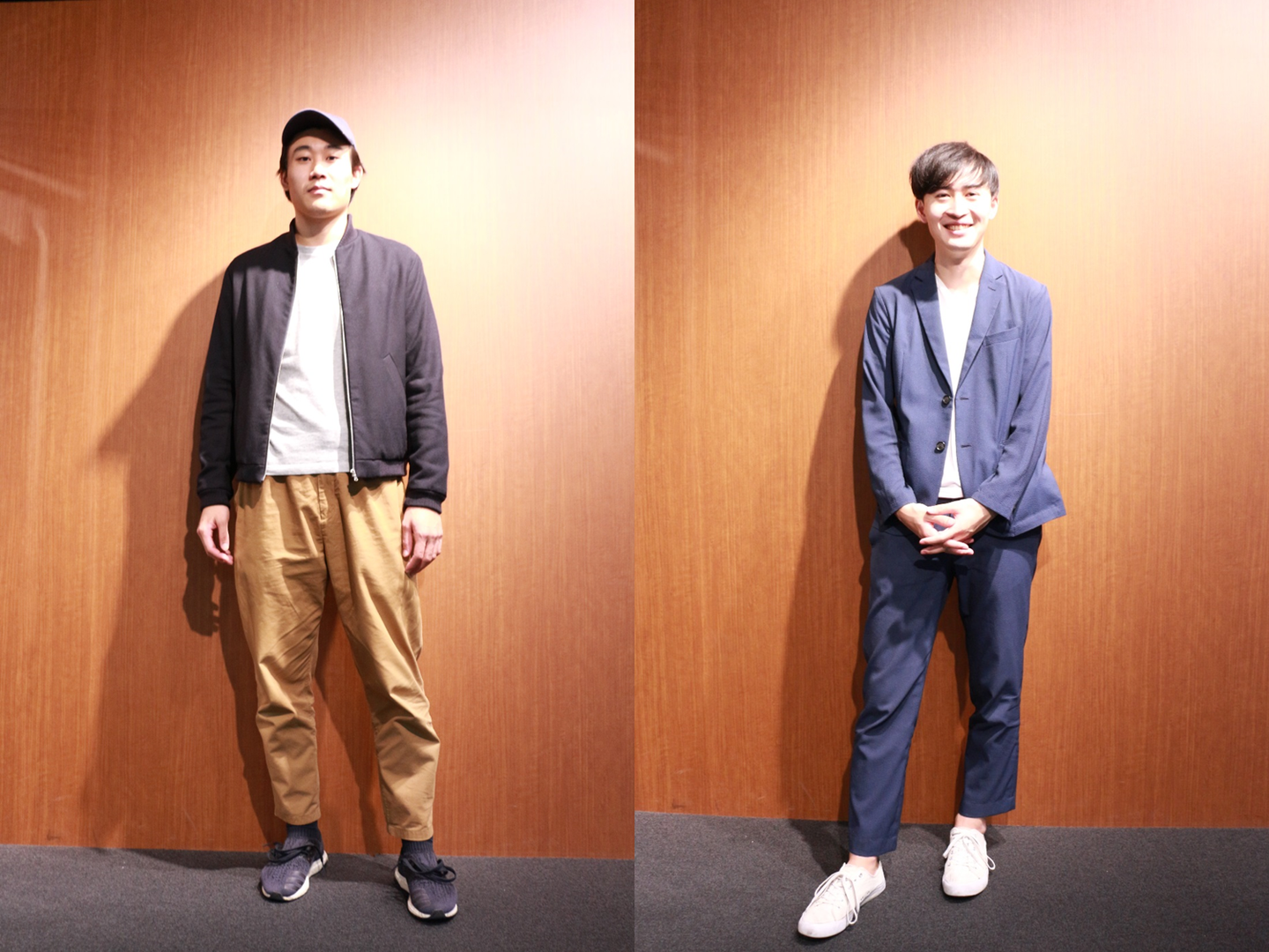 まずは営業プロデューサーのお二人。社外でクライアントとお打ち合わせする機会が多いため、割とキチッとした服装をしています。