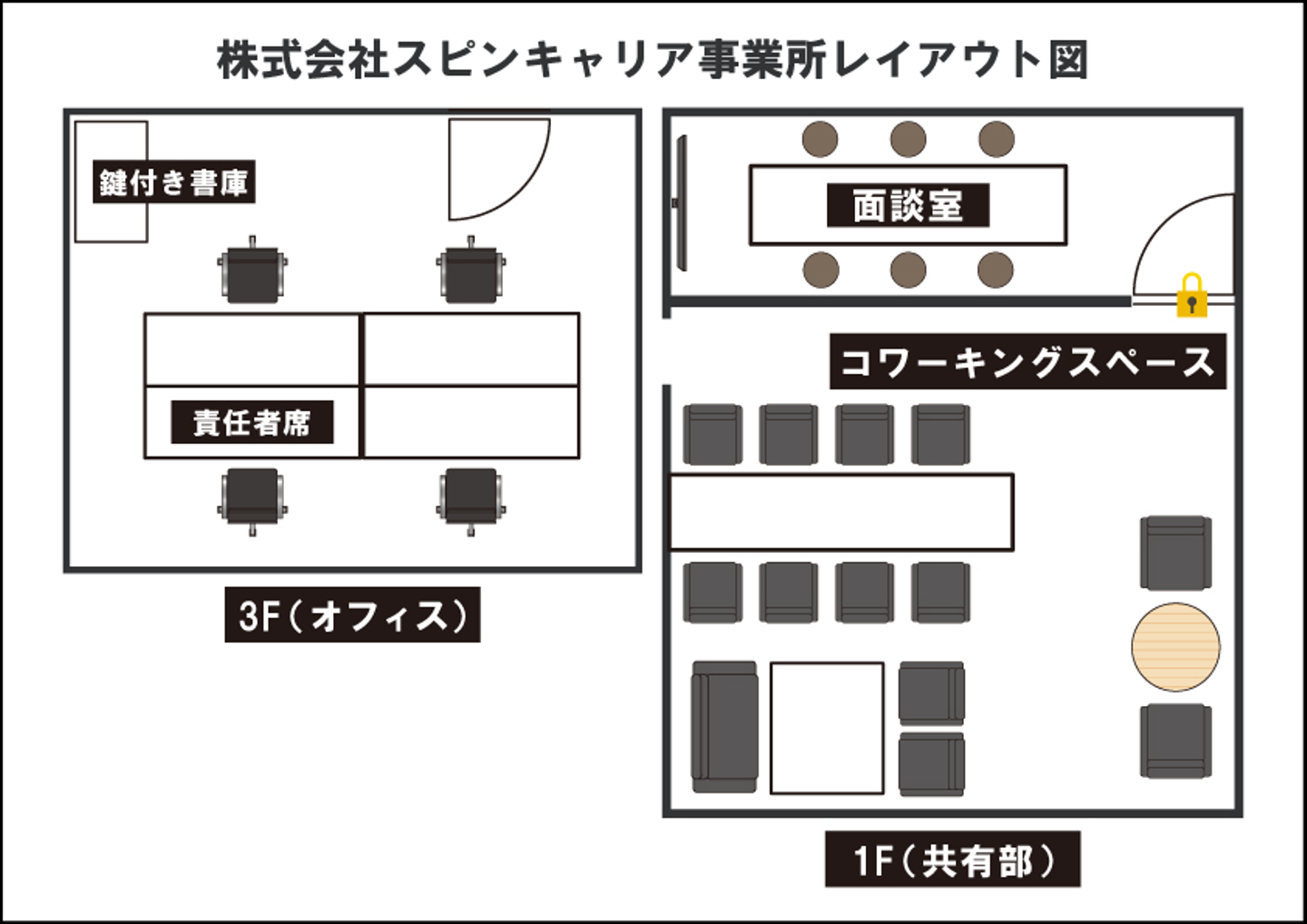 申請に必要とのことで、オフィスのレイアウト図まで作成しました。こういう物まで作るのかと最初は思いましたが、意外と上手に作れたので結構気に入っています(笑)。