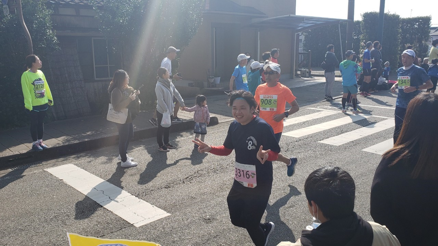 まずはハーフがスタート。そのあとに10キロ。全員スタート時は余裕の様子。途中から、人によって差がでてきました。マラソンは孤独なものに感じますが、折り返しで社員を見つけた時の嬉しさ!手を振ってお互いを認知することで、元気がでてきます!