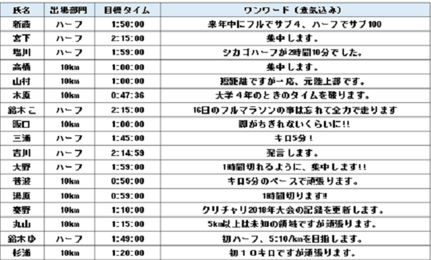 今回、都農尾鈴マラソン大会に参加するにあたり、10キロとハーフ、どちらに出場をするかをとり、それぞれ目標タイムを設定しました!