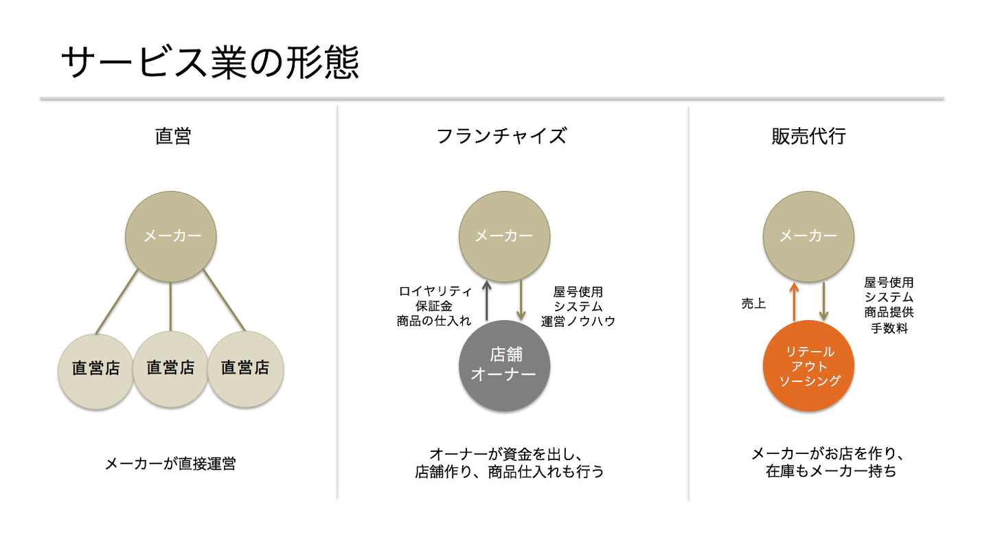 そもそも、サービス業は下記のように大きく3つの形態に分かれています。