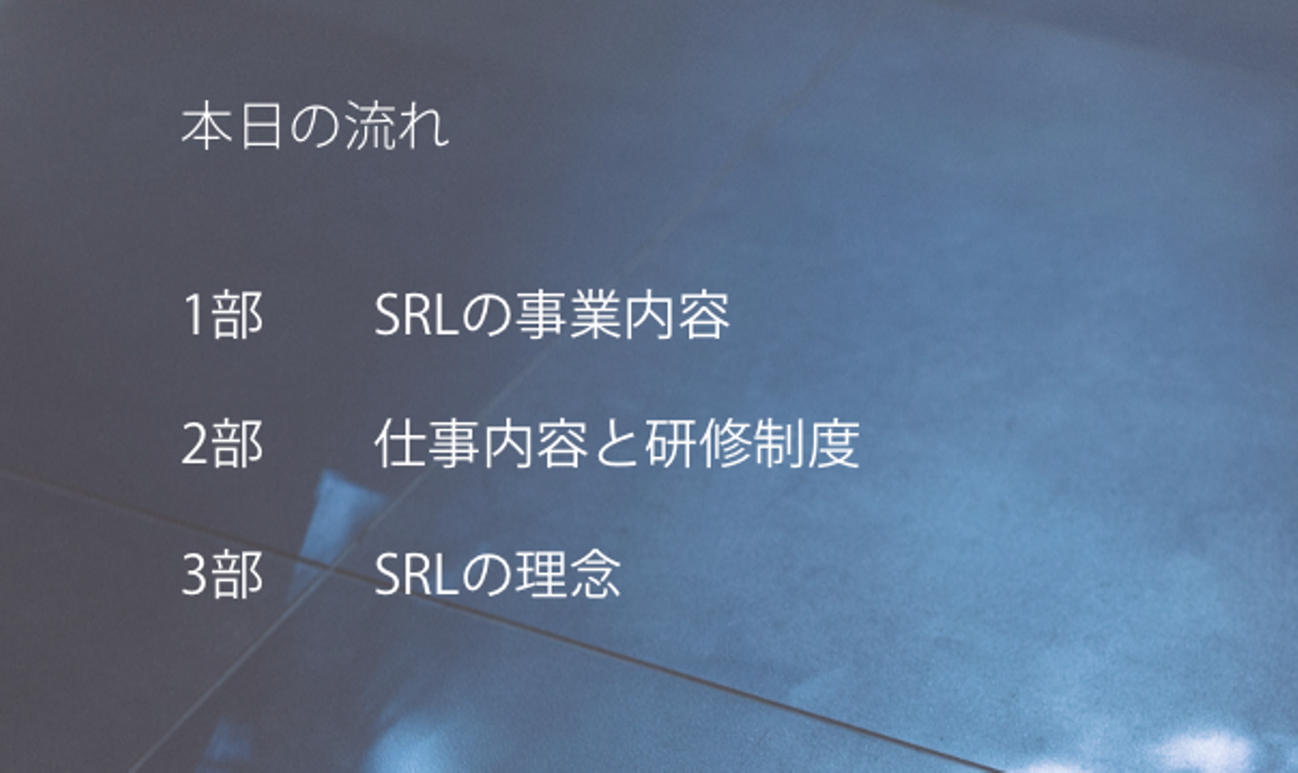 トークセッションが終わった後は、社長よりSRLの考え方についてお話します。