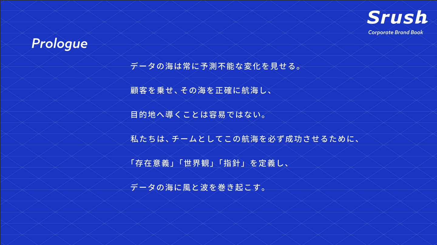 Srushでは、データマーケットに対するハードコミットメントと人を大切にする想いをコーポレートブランドブックとして2022年11月に作成しました!