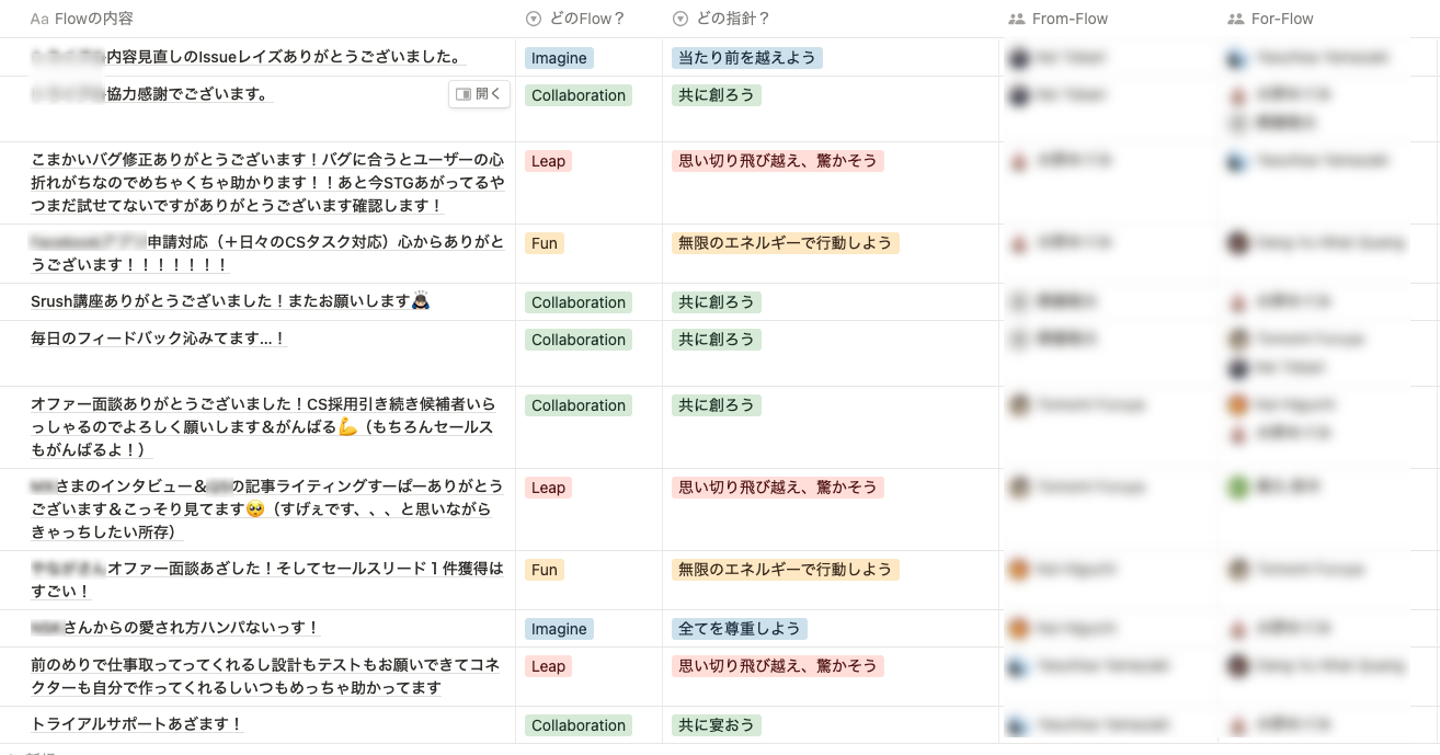 そして、毎週金曜日(出社日)には、Srush Flow Meetingといって、Flowを送り合う時間を設け、
