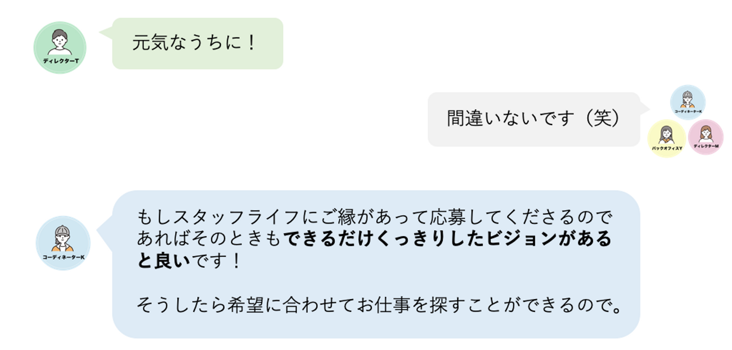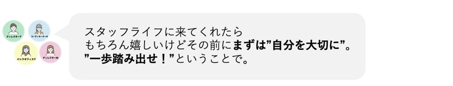 縁あってスタッフライフに入社したメンバーの現在と今思うことを聞きました。