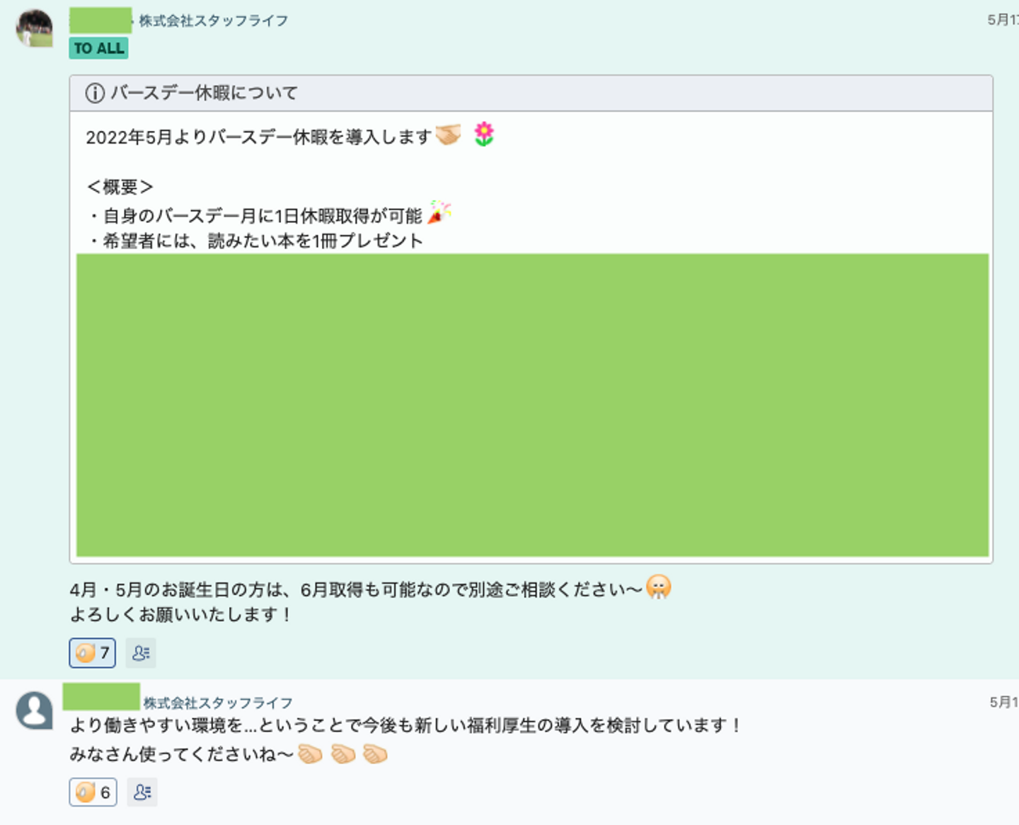バースデー月の1日、好きなときに休暇取得を可能にしました。