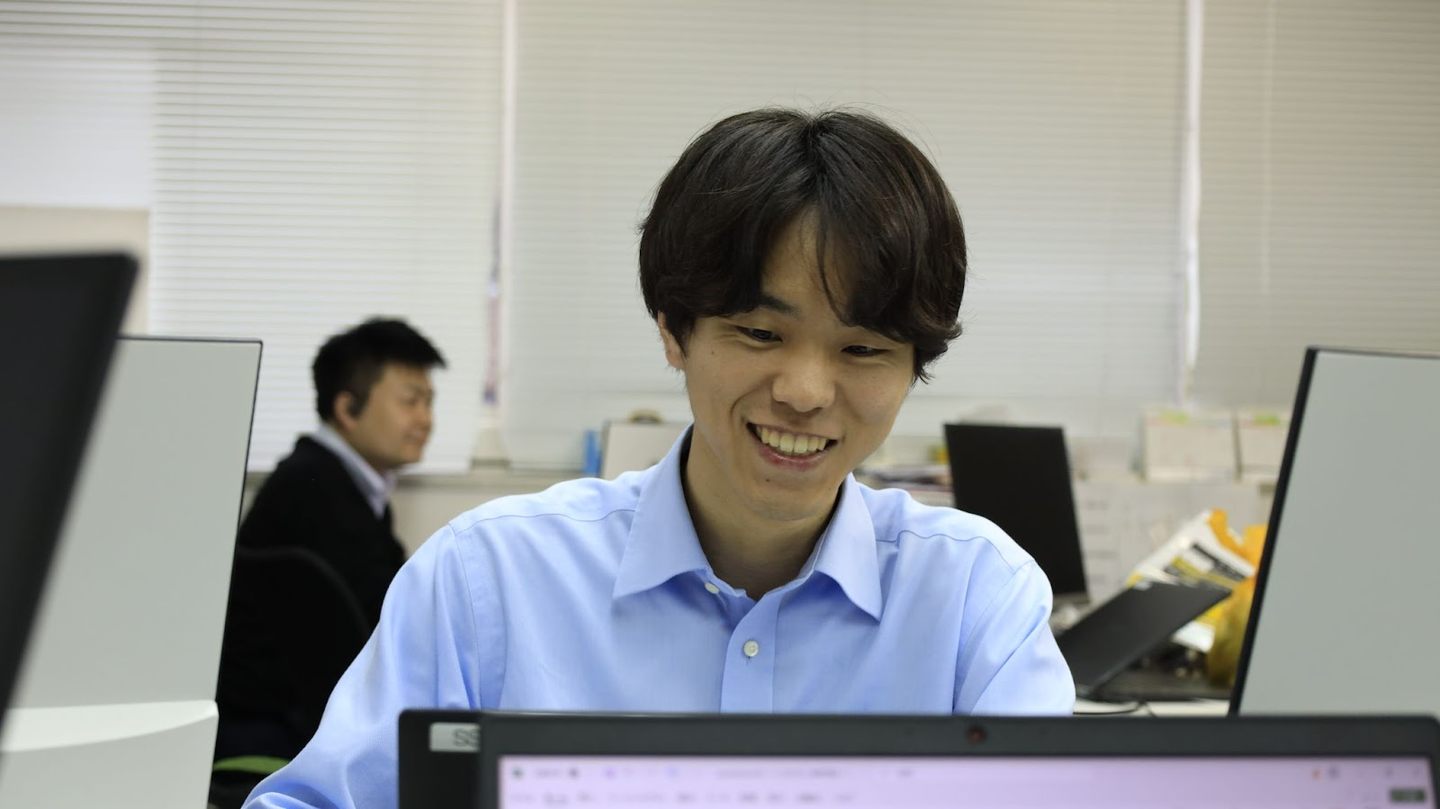 実際に現場に入ると、大切なのは言語の知識よりも現場の知識。あえて苦労した点を挙げるのであれば、経験年数がないところですね。全体像が理解できていないと、自分が何のコードを書いているのかわからないんですよ。理解を得るためにかかる時間は人それぞれでしょうけど、僕は入社して1年くらいで全体像がみえるようになってきました。
