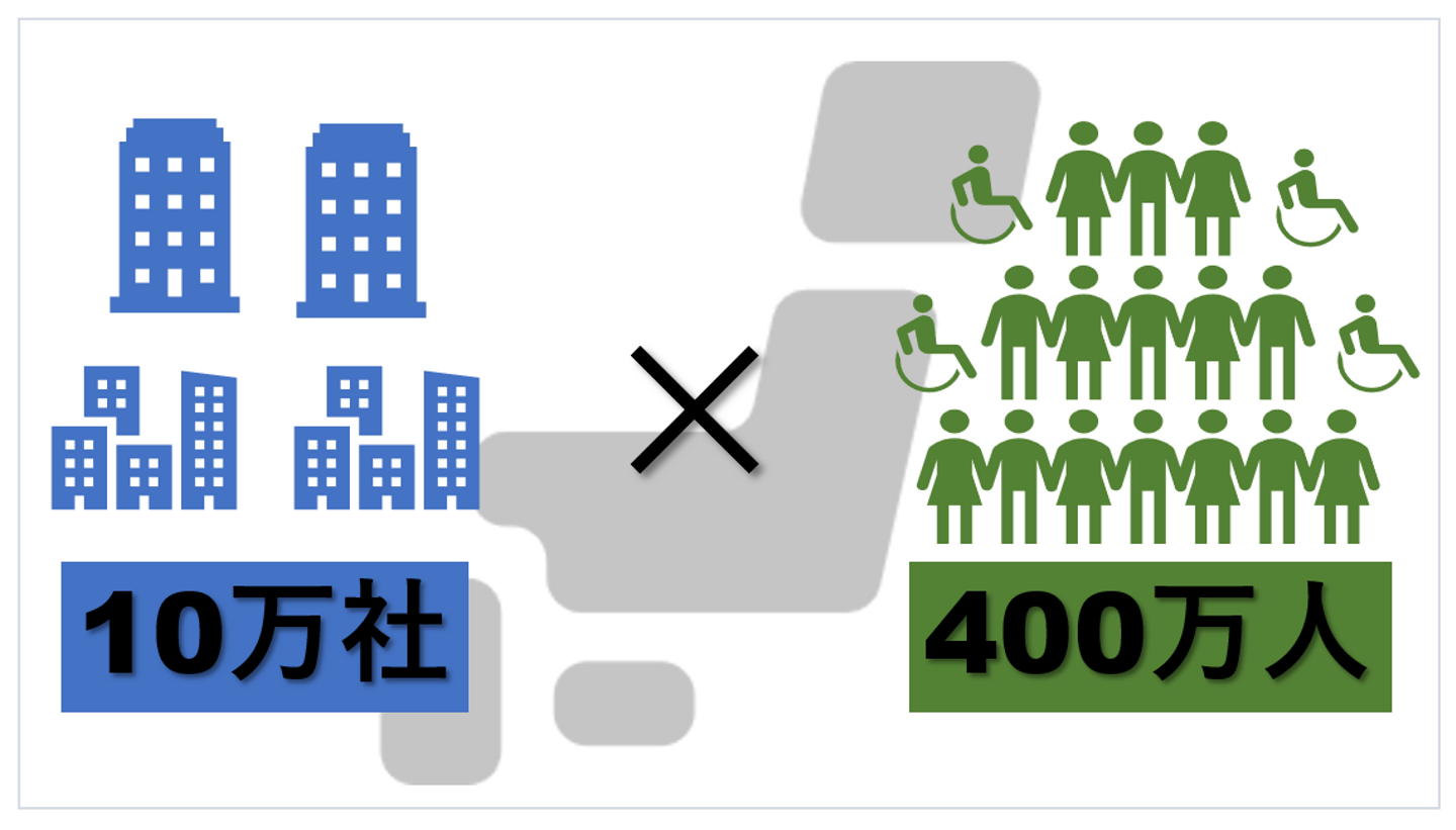 日本には障害者雇用義務がある【会社】(従業員を43.5人以上雇用)は【10万社】以上あります。各企業はそれぞれ障害者雇用における課題がありますが、特に昨今