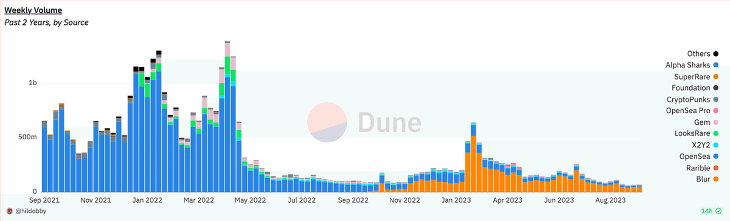 Ethereum上のNFT取引量推移(金額ベース)出典: Dune Analysis
