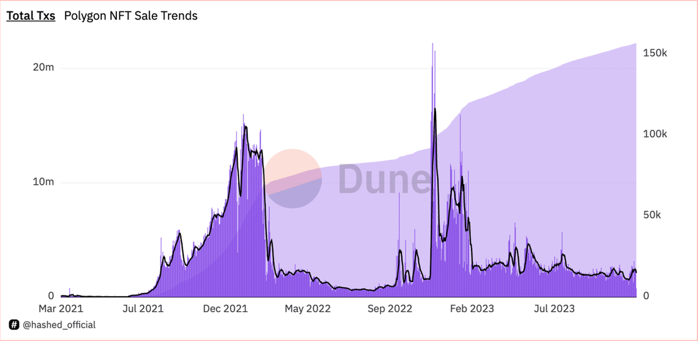 Polygon上のNFT取引量推移(取引数ベース)出典: Dune Analysis