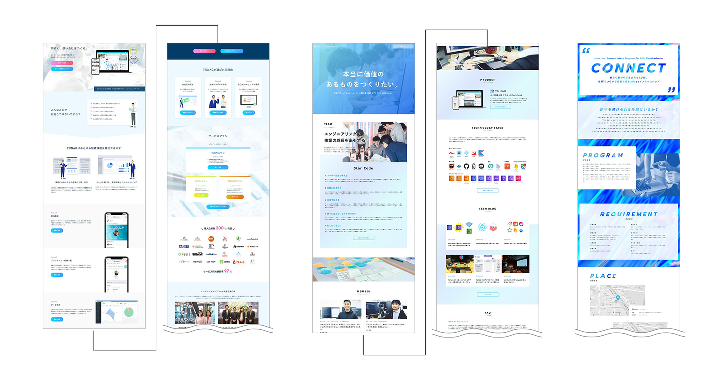 その他の業務としては、エンジニア採用サイトの制作や、マーケティングチームと連携してのTUNAGのブランドサイトの運用改善も行っています。広告用のバナー制作や、社外報や表彰ポスターなどの社内制作物もつくっています。
