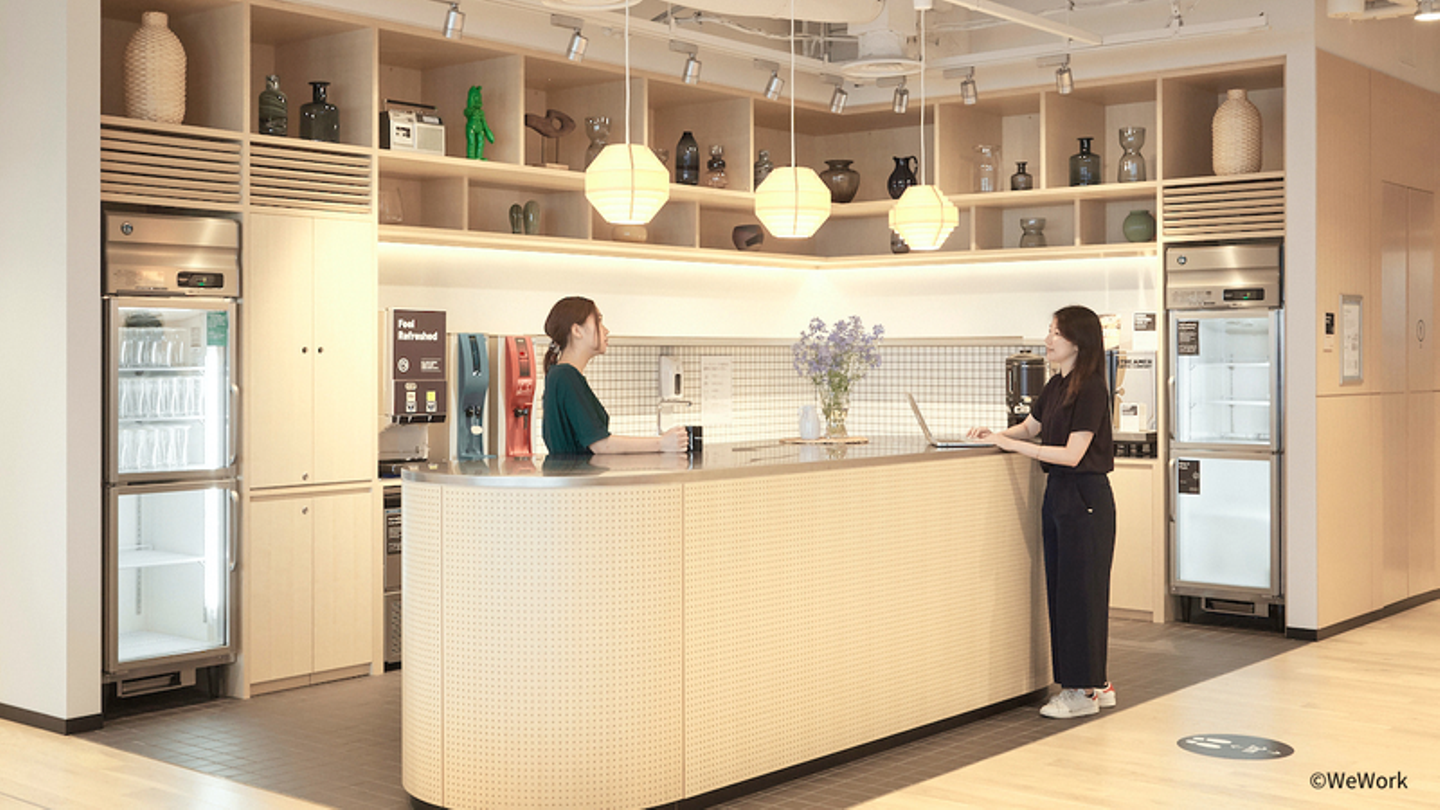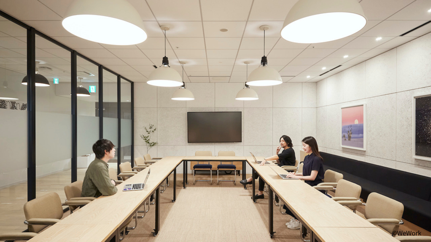 WeWork はフレキシブルオフィスです。ラウンジスペースと会議室は他社と共用で使用させていただいています。まだ入居して1年も経っていないですが、東京メンバーの満足度も高い、素敵な環境となっています。