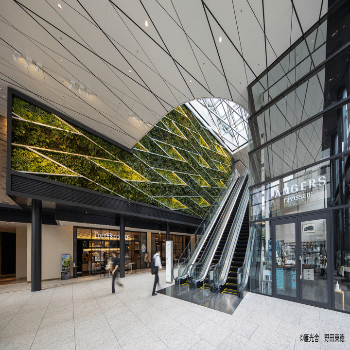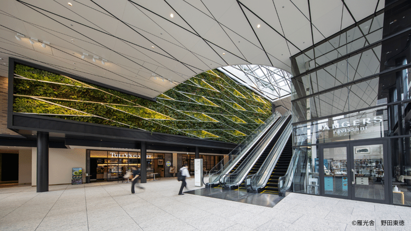 こちらの建物には、企業のオフィスの他にも様々な施設があり、ビル1階には飲食店や食品スーパーなどが入る利便性に富んだ商業施設が併設されています。建物の外には緑豊かな広場があり、人々がコミュニケーションが取れる、暖かい場所があります。