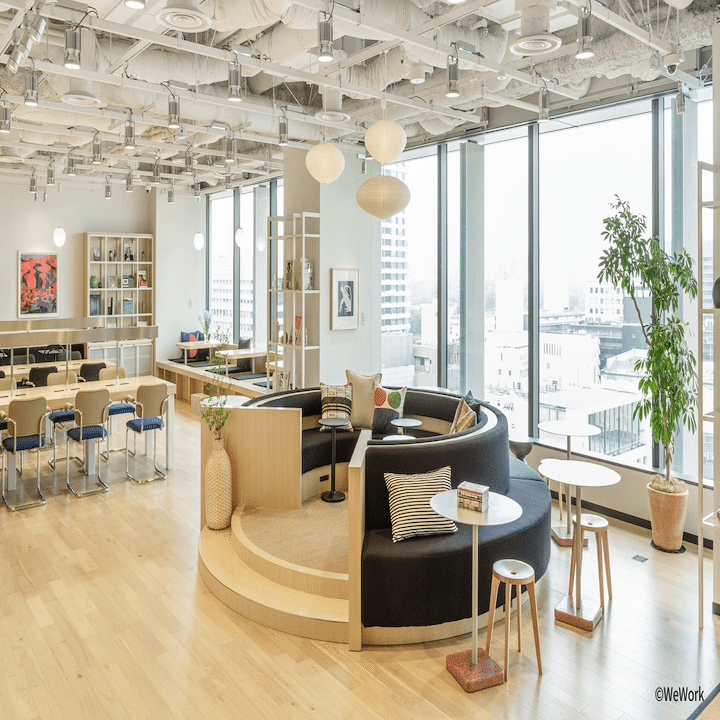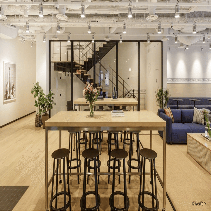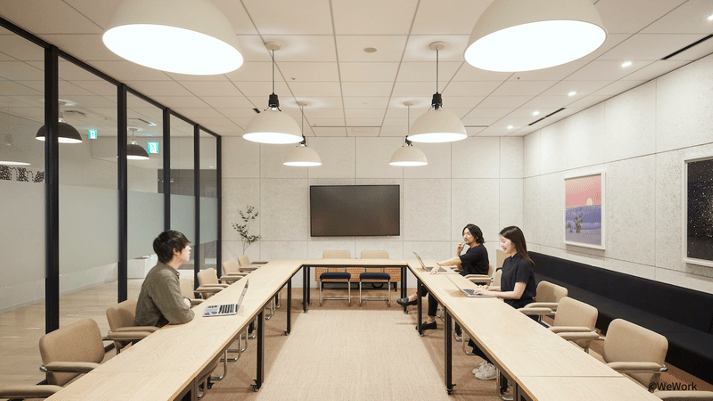 WeWork はフレキシブルオフィスです。ラウンジスペースと会議室は他社と共用で使用させていただいています。まだ入居して1年も経っていないですが、東京メンバーの満足度も高い、素敵な環境となっています。