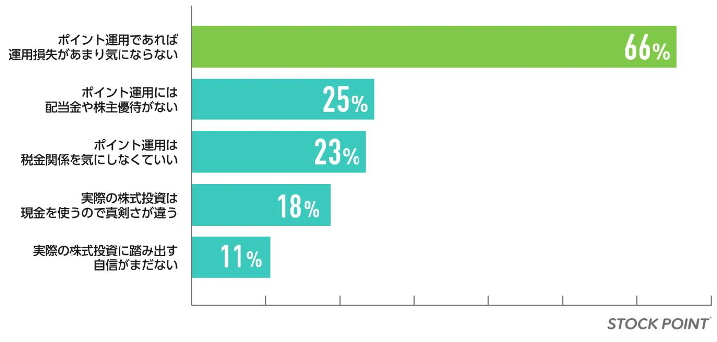 全体の66%の方が「ポイント運用であれば運用損失があまり気にならない」と回答し、最も多い結果となりました。STOCK POINTのアプリは気軽にスタートできるので、初心者の方にもおすすめです!