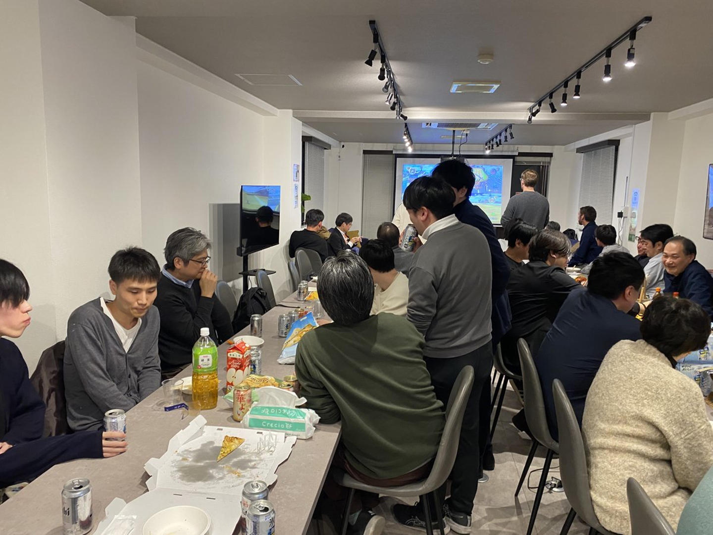 スピーチの後は、和やかな歓談と美味しい料理を楽しむ時間へ。会場のレンタルスペースは笑顔と会話であふれ、温かい空気に包まれていました。マリオカート大会で盛り上がった場面は、ストーンシステムの企業文化「協力・創造性・仲間との信頼」そのものを体現していました。