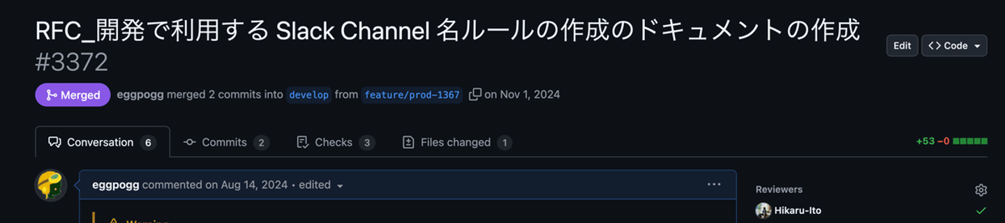 Slack チャンネル名を決めるときに GitHub の PR を利用して、RFC 形式でコメントをもらいながら合意形成をしました。