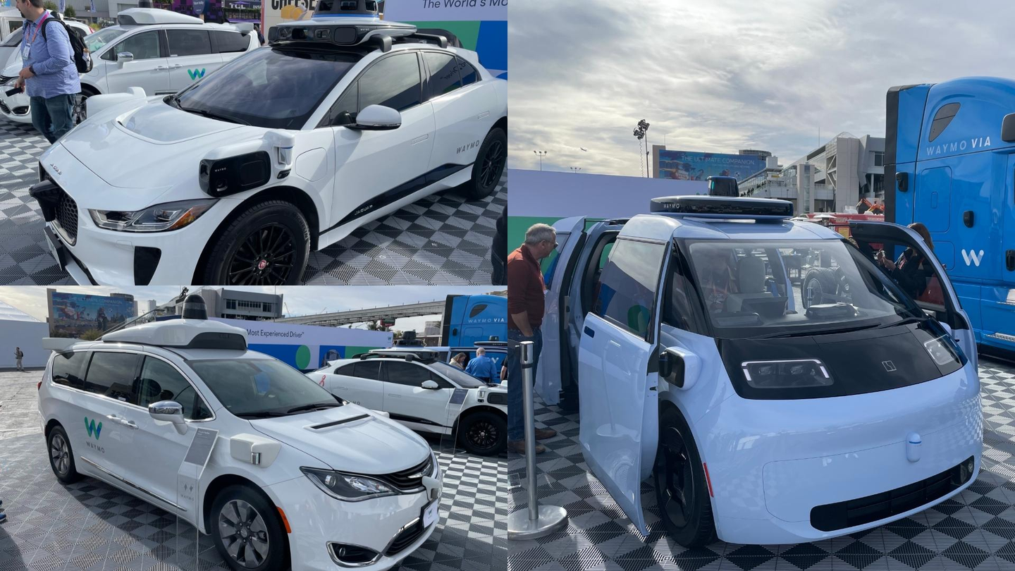 この車体、見覚えがあるなぁと思ってたら、今年のCES2023で展示されてた車体でした。 実際に走ってるのは画像の左上ですが、トラック型、ワゴン型などを展示していたので、 これらもその内走り出すのではないかなと思いました。 去年サンフランシスコに行ったときは、cruiseという会社が、自動運転の車を走らせていたのですが、 一回も見ませんでした。