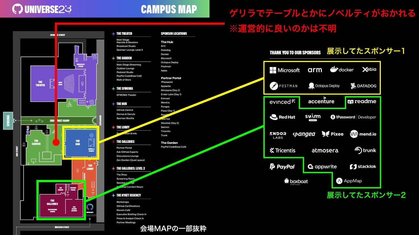 「LLM + GitHub連携による、セキュリティやCI/CDワークフローの自動化」 Github Universeでは、おそらくスポンサーのブースが設けられ、大きく3つのグループが存在しました。