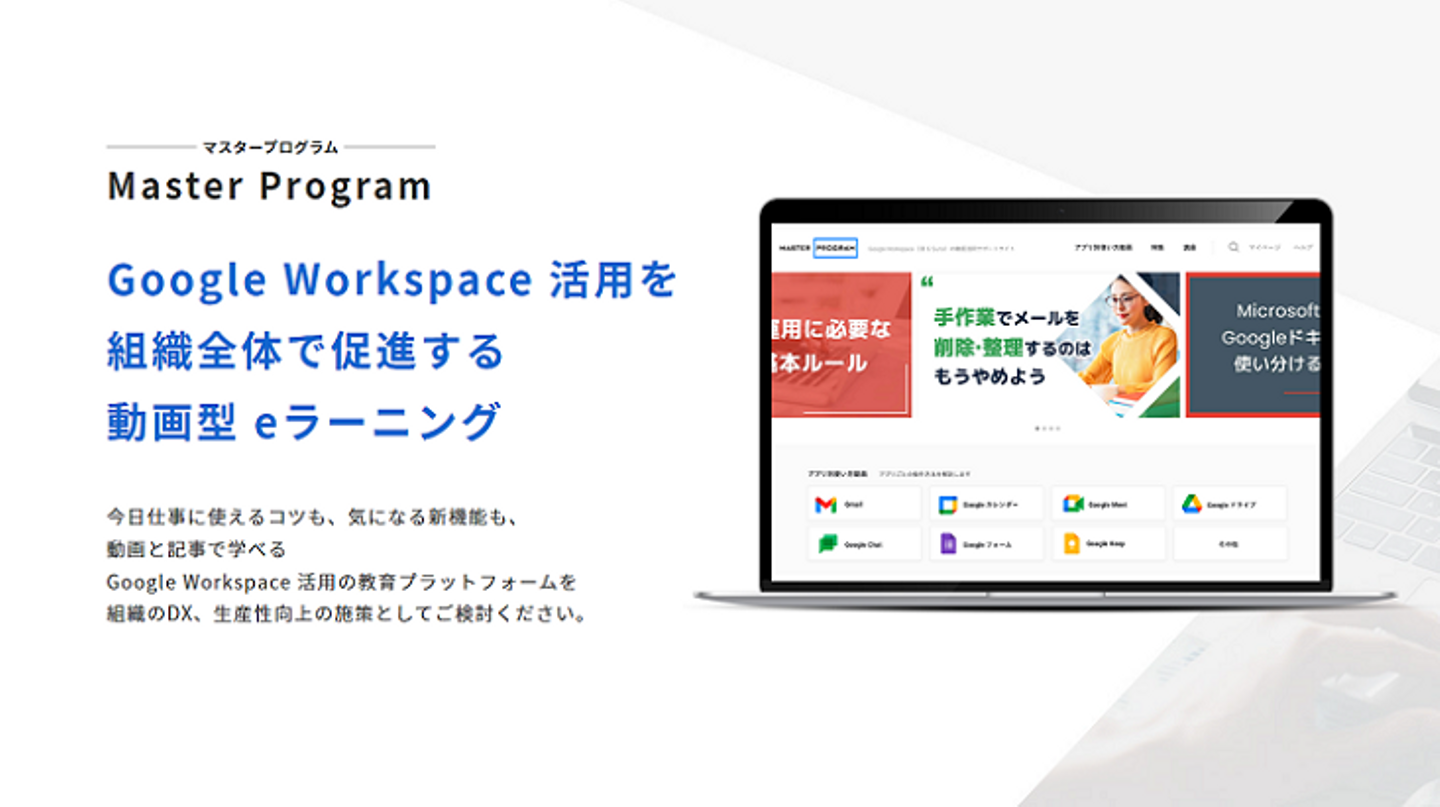 藤田:既存の事業は、特別なノウハウ提供やスペシャリストによるご支援により、スポットで対価をいただくビジネスが主軸です。今は、これまで培ったノウハウを活かして Google Workspace の利活用を促進するeラーニングプラットフォームの「Master Program」というサービスを法人組織向けに展開し、SaaSのビジネスを事業のもう1つの柱に育てるチャレンジをしています。