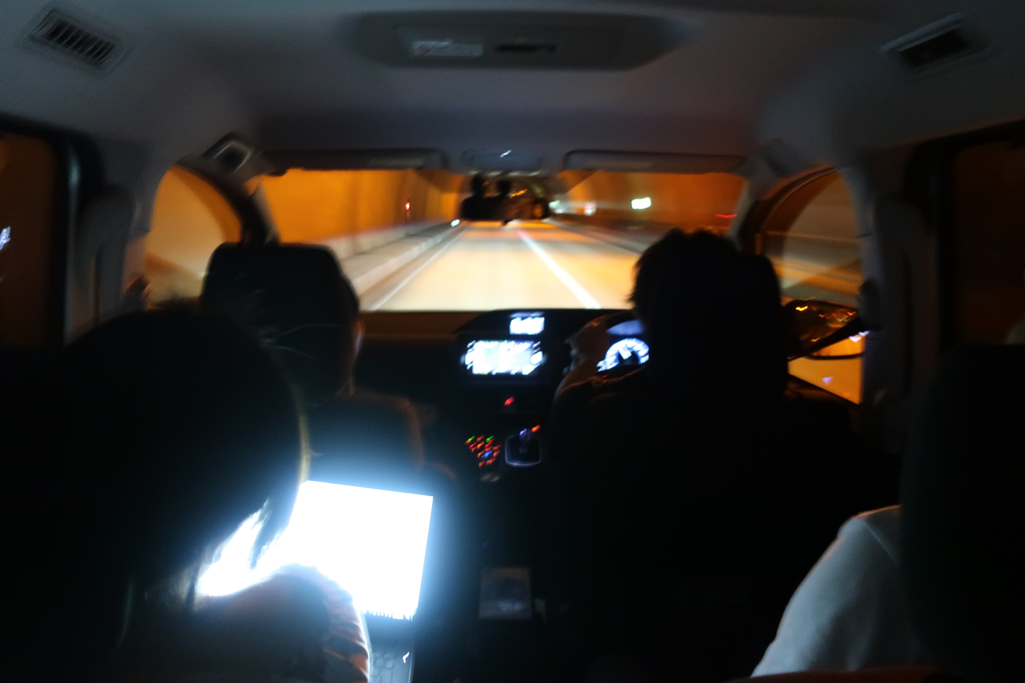 車内でも本当に事業課題に関するミーティングをしている様子。
