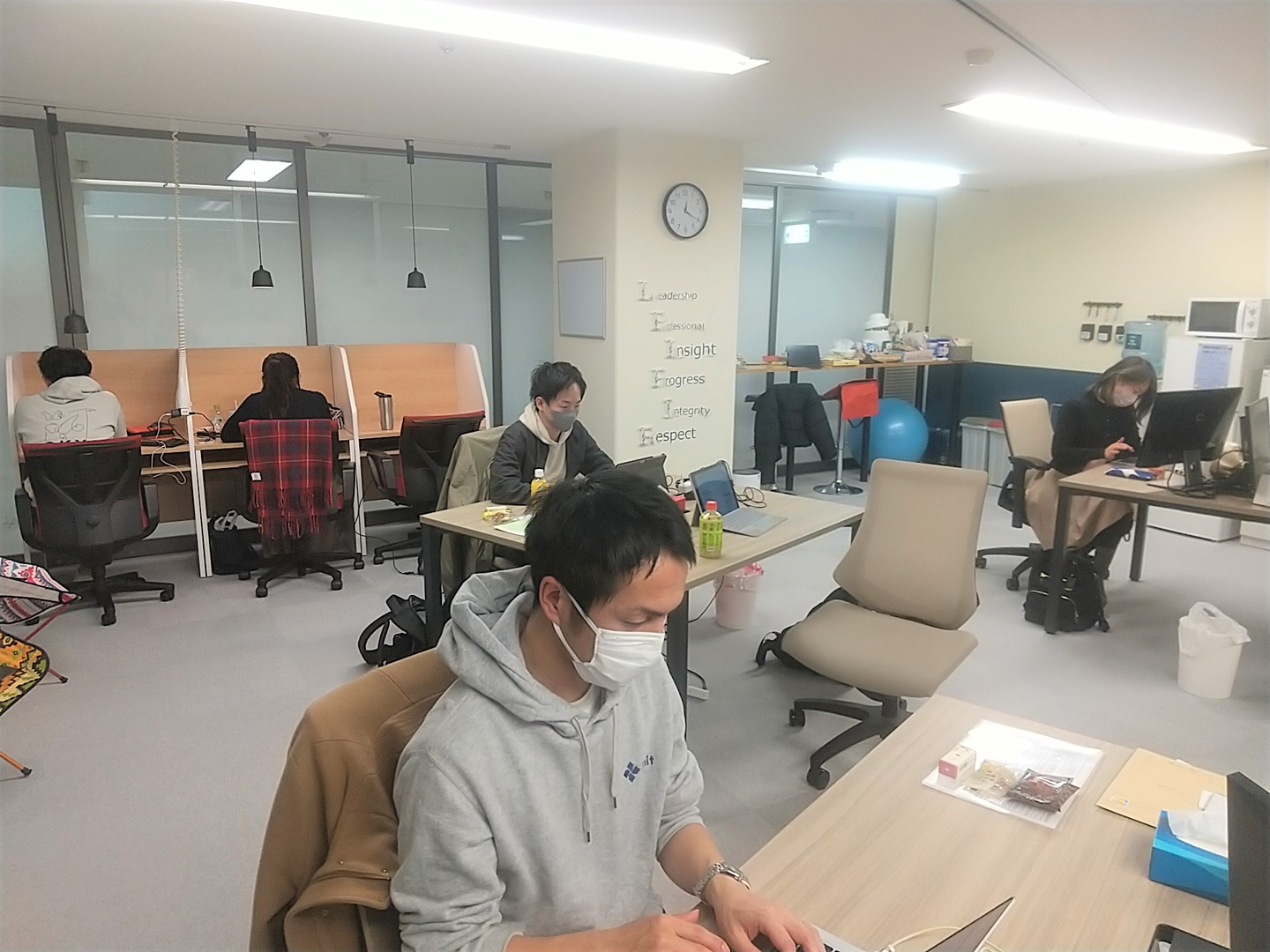今回私がオフィスに行ったのは火・水・木の3日間。火曜日はたまたま多くのメンバーが出社して、オフィスはぎゅうぎゅうになりました。