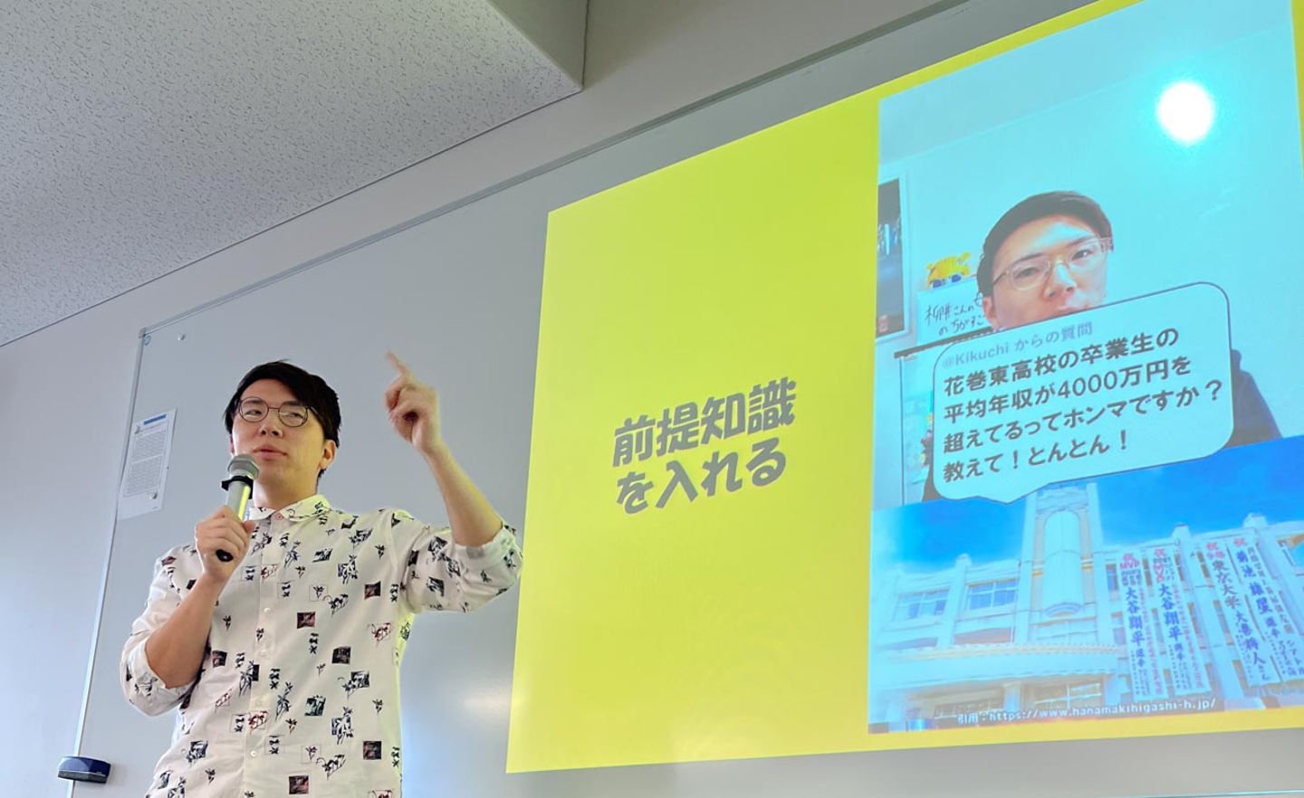 特に学生たちが食い入るように聞いていたのは、彼がどのようにフォロワーを増やし、教育コンテンツを効率よく広めていったかという点です。
