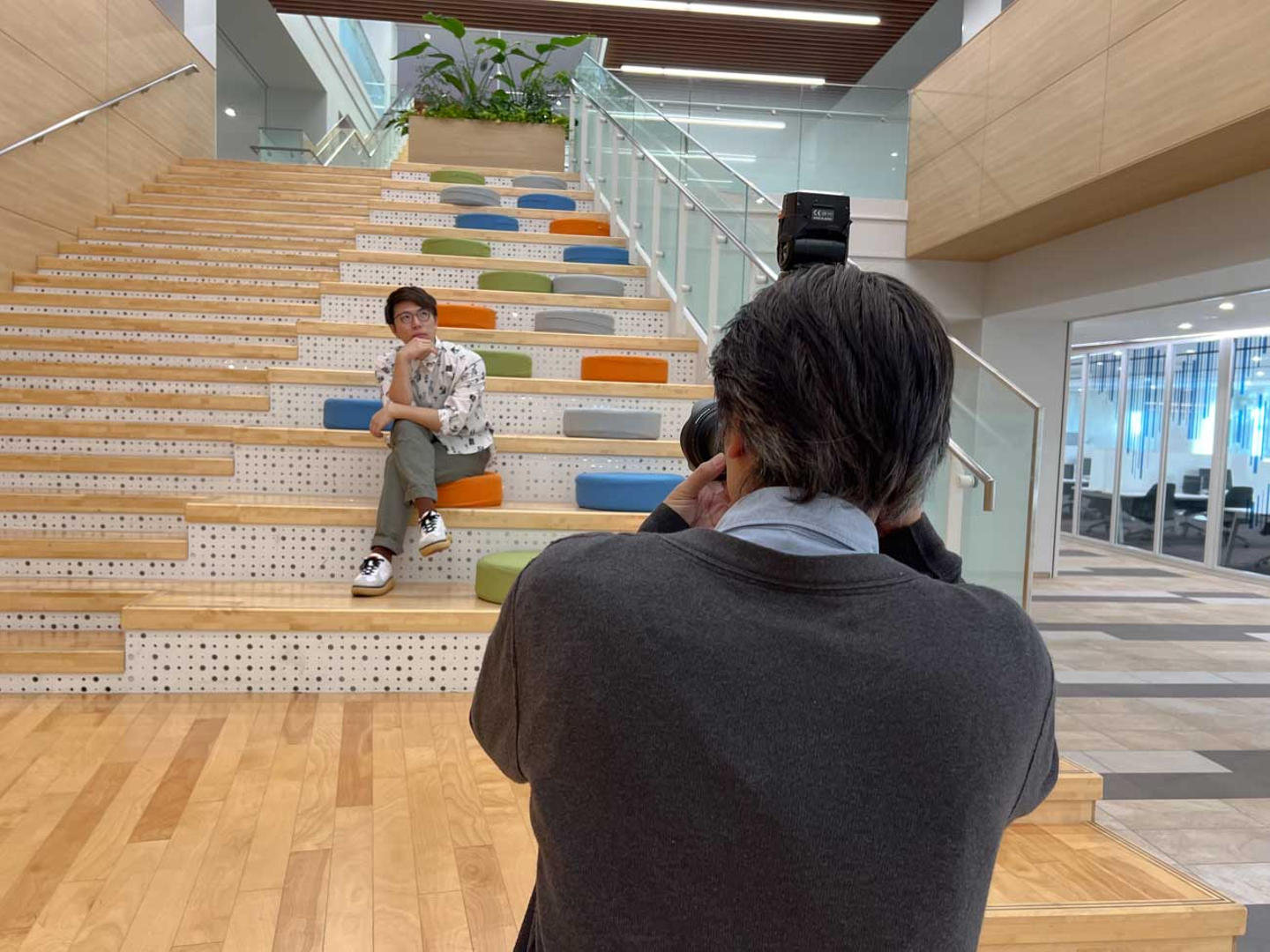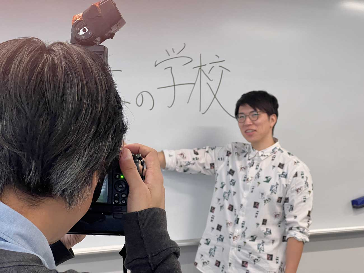 許可を頂き、大学構内の複数箇所で記事用の写真撮影を行ったあと、西山教授に取っていただいた教室で1時間の取材を行いました。