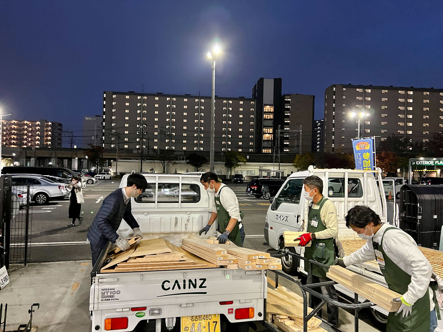 ホームセンターで軽トラを借りて、メンバーで運びます。資材を調達して、カットしてもらい、搬入するだけで丸一日。へとへとです。