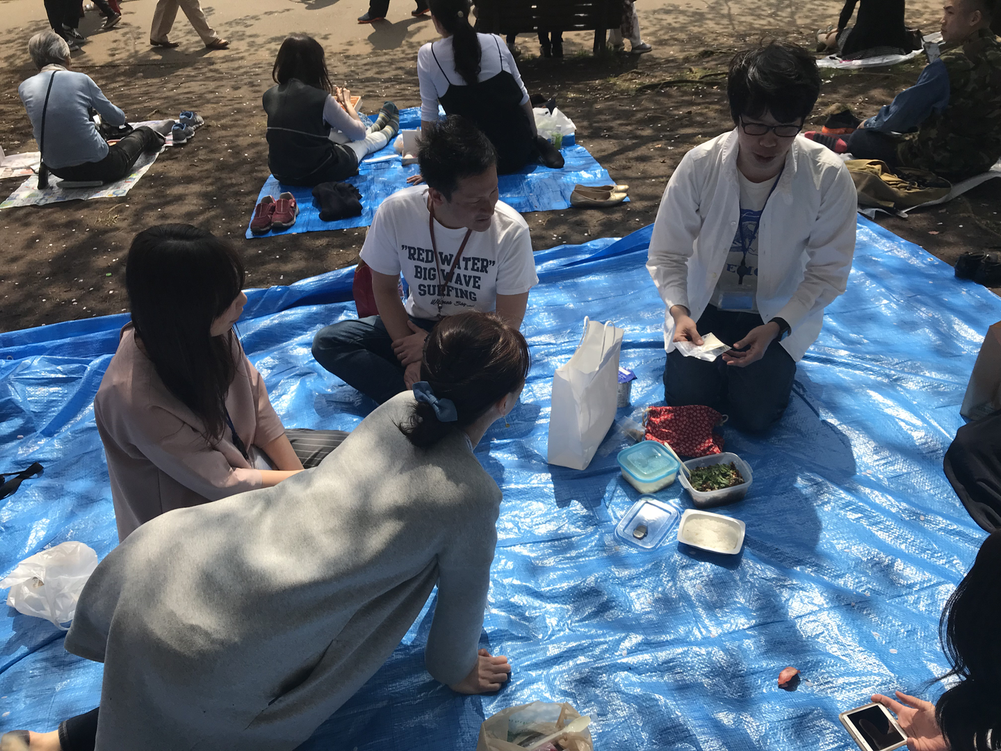 企業のお花見というと、夜にお酒を飲みながらワイワイ、というイメージが強いかと思いますが、スタディストには夜になかなか出かけづらいパパ・ママ社員が多いこともあり、平日の昼間に開催しました。