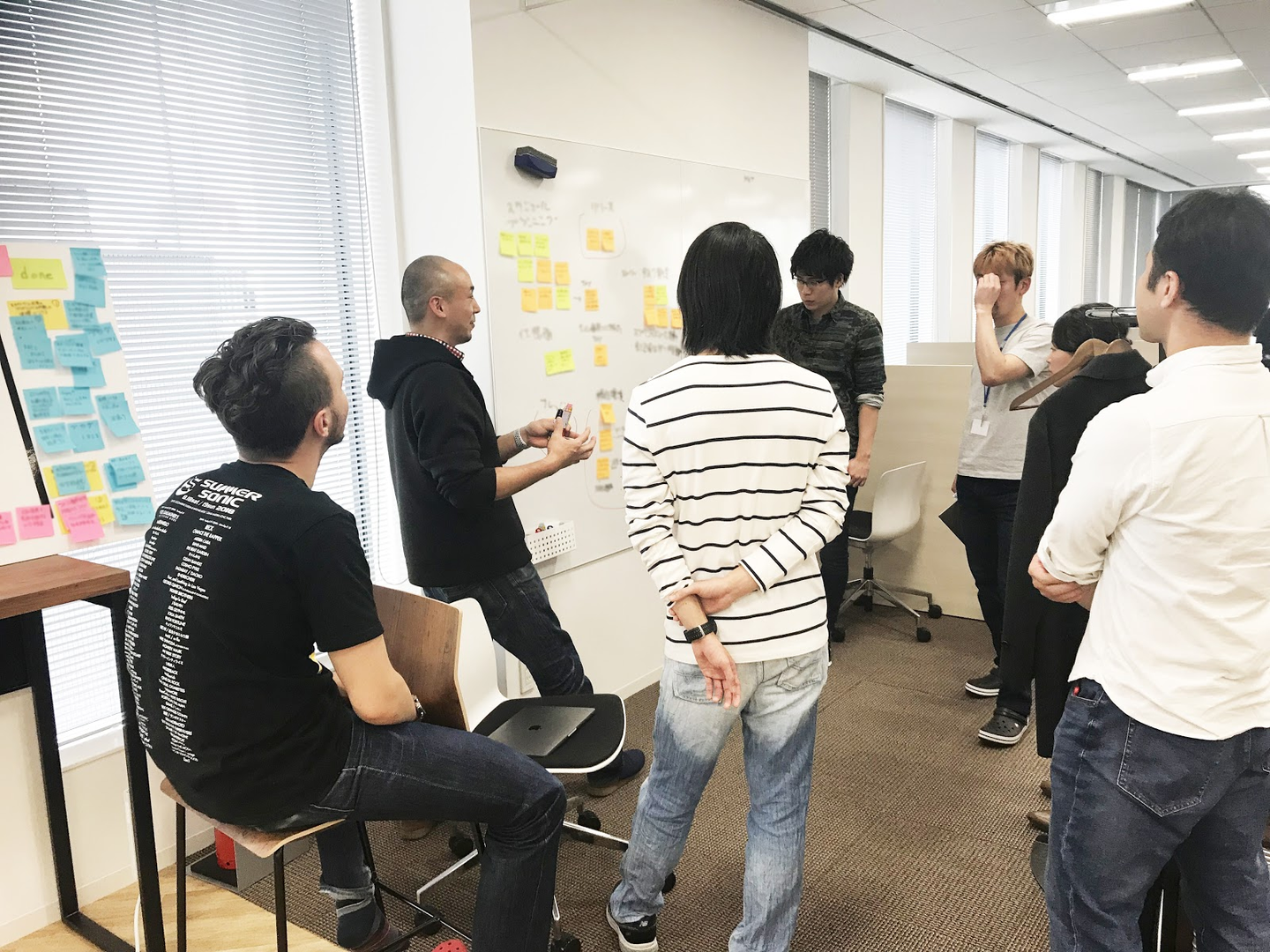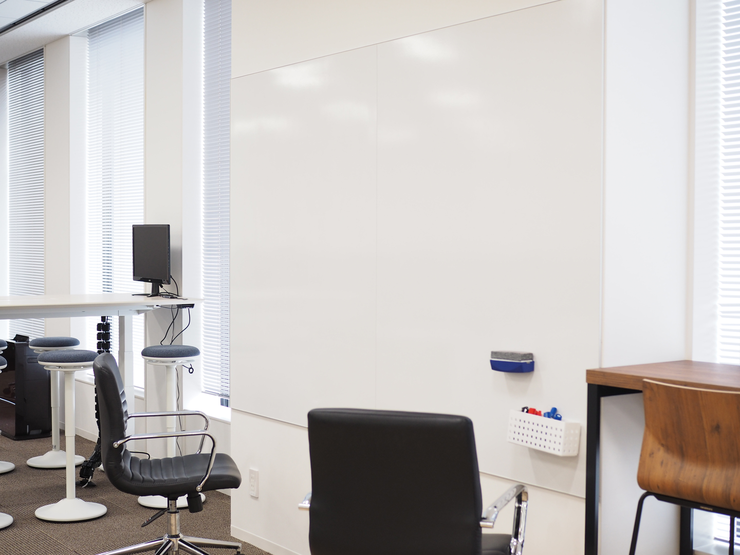そのとなりには、大きめのホワイトボードが。ちょっとした議論にホワイトボードは便利ですよね。今日もさっそく付箋を貼ったりしながら活用されていました。
