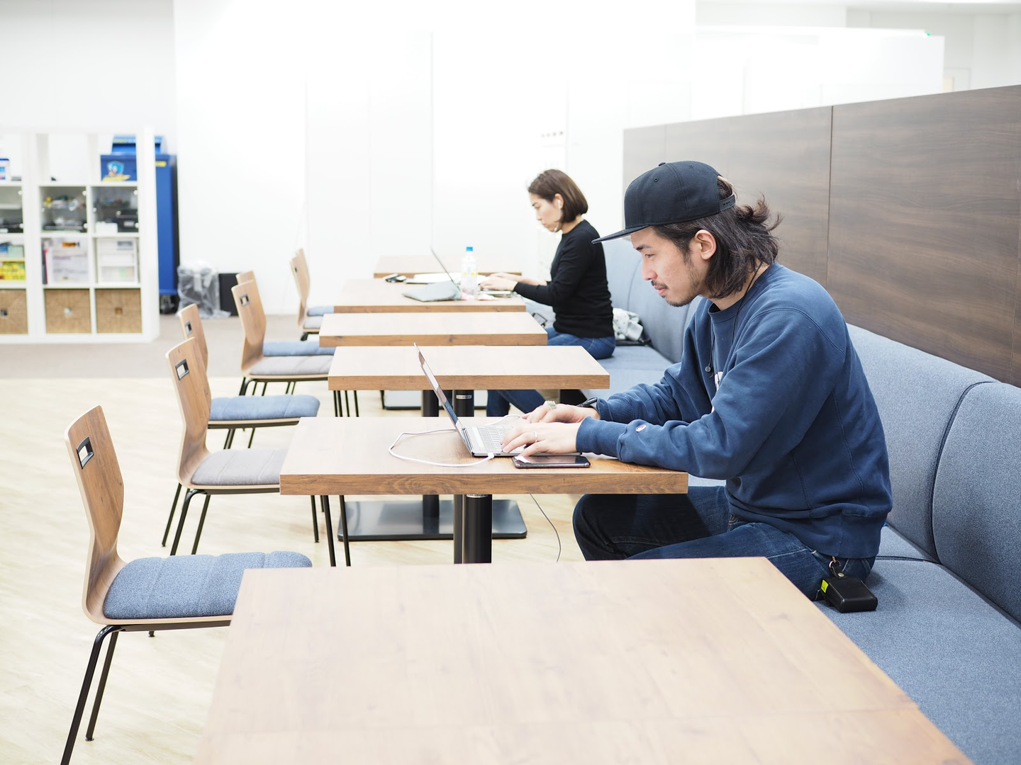 初日から、思い思いの場所で働く社員の姿が多く見受けられました。