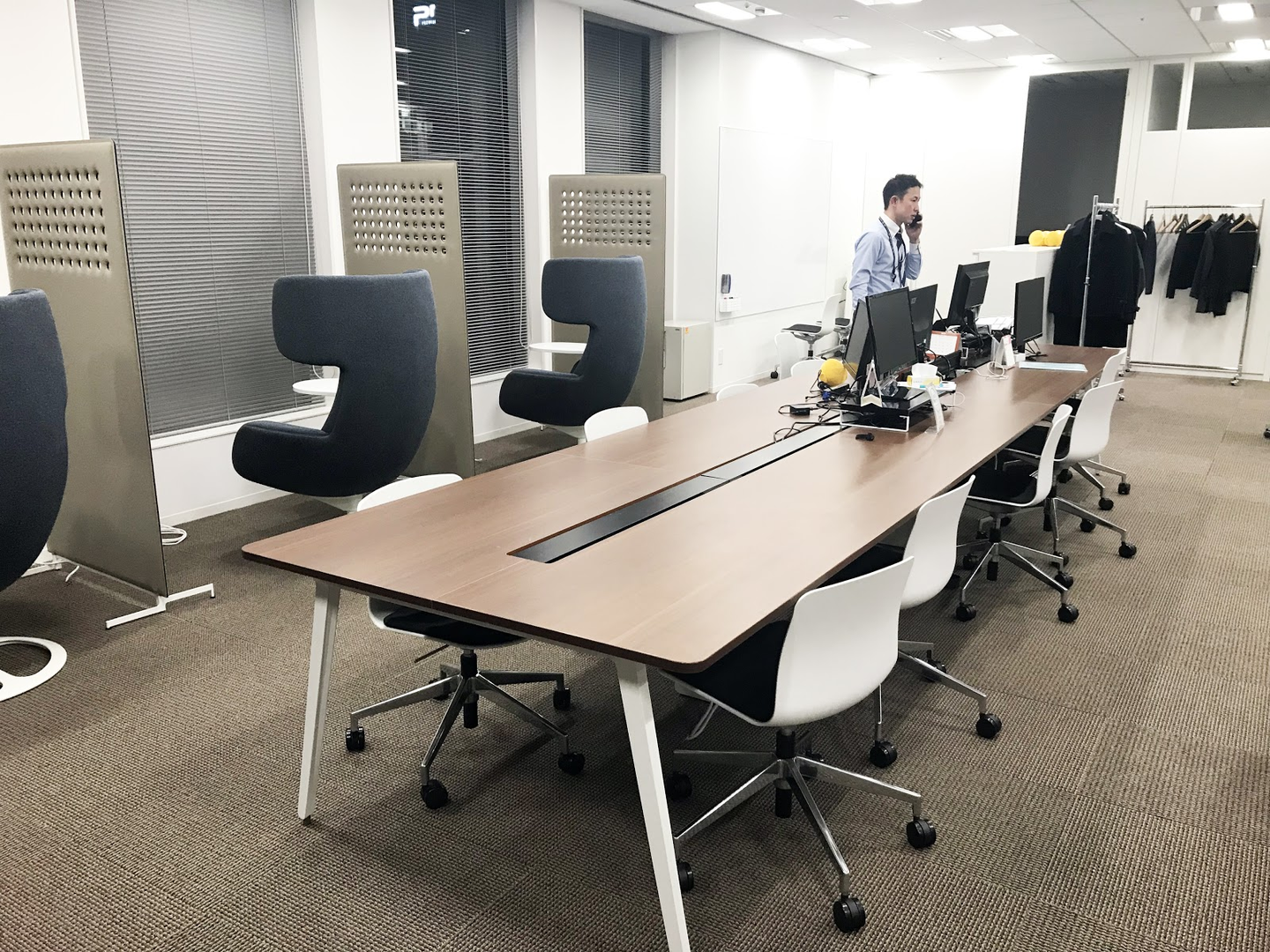 フリーアドレス席も用意していて、普段本社にいない、大阪、名古屋、バンコクのメンバーが来たときにはここに座れるようになっています。