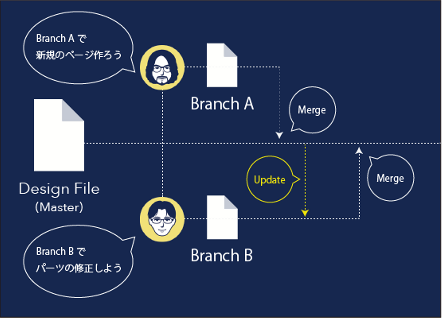 (写真:田中が作成したデザイン共同編集の仕組みを解説した図)