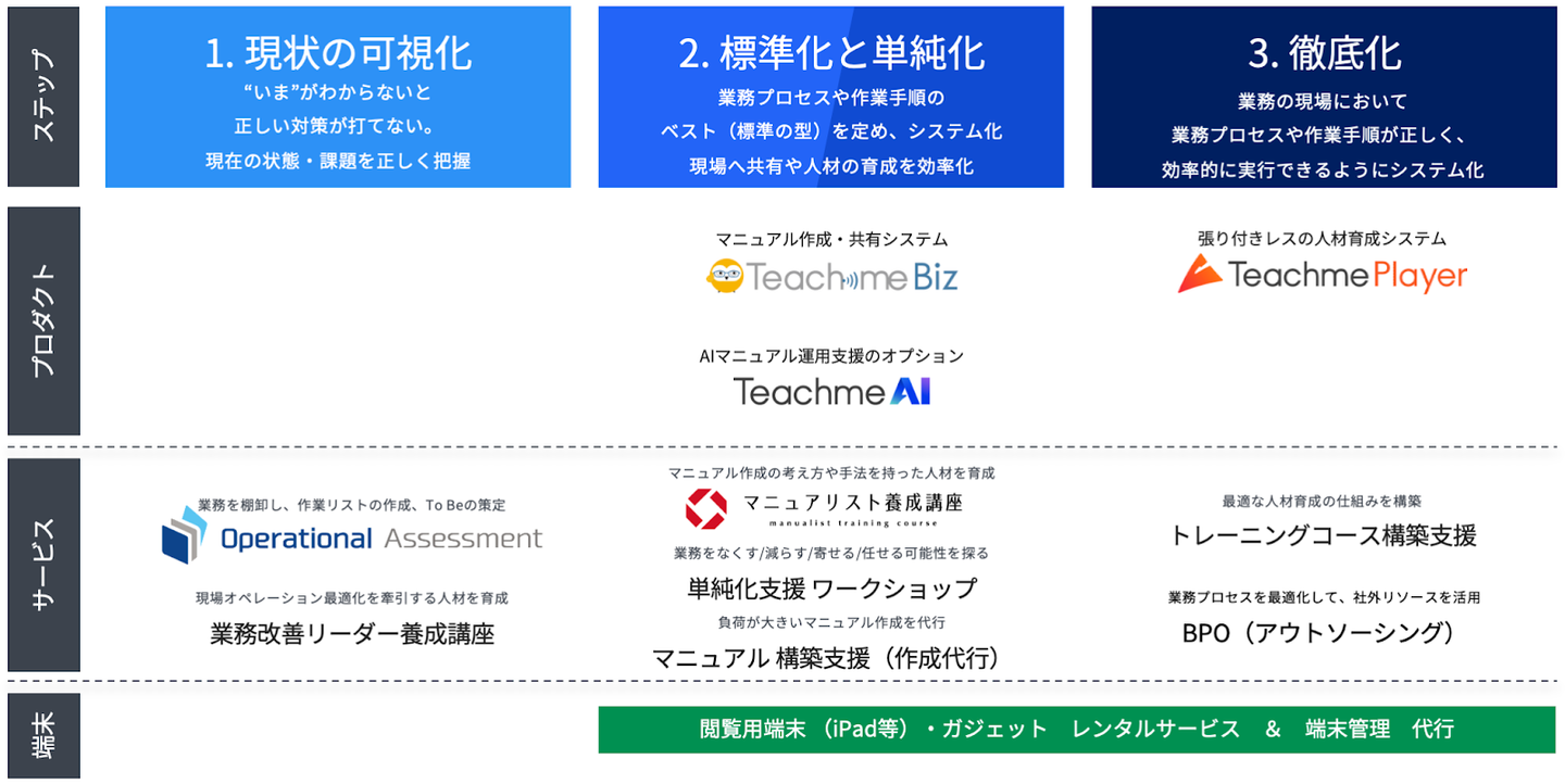 このコンセプトをもとに2年間かけて事業構造を転換し、プロダクトラインナップも着実に増やしてきました。Teachme AIやTeachme PlayerといったTeachme Bizの関連サービスのほか、デバイスレンタル事業やBPO事業など、新しい動きも活発になっています。これらの新規プロダクトやサービスは、お客様からご評価いただき、収益化にも繋がっています。
