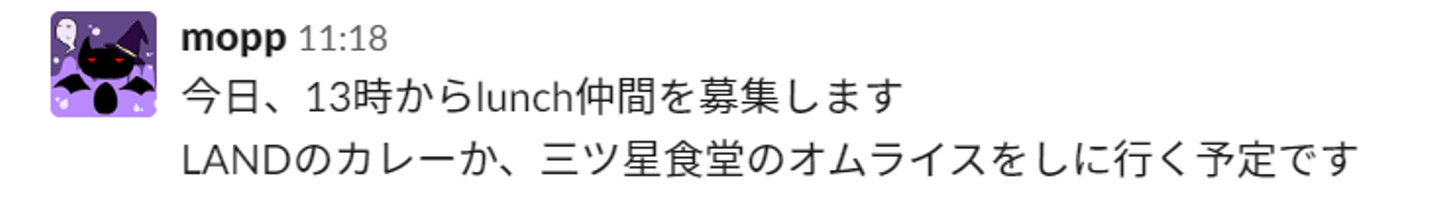 隣の席の同僚でなくてもこのチャンネルで呼びかければ、今まで一緒に仕事をする機会がなかった人ともランチに行けることもあるようです。